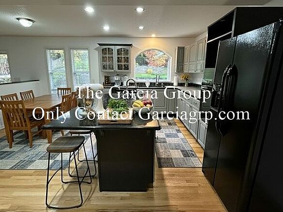 Beautiful spacious 4 Bedroom, 2 Bathroom home in Milwaukie. Open Living room, Dining room and Kitchen area. Kitchen features, a Built-in Oven, a Granite island with a glass cooktop and a Large Pantry. The large primary bedroom has vaulted ceilings, new carpet, a walk-in closet, a seating area and French doors to back Patio. Main suite bathroom has a walk-in shower and jacuzzi tub. Attached single car Garage has entry into laundry room or mud room. The backyard is a fully fenced, beautifully landscaped oasis and is maintained by landscapers for your total enjoyment! Lower level of the yard, walking out from the house, has a large patio area and raised garden beds. Take the stairs to the second level with a firepit area and large utility shed. Enjoy the trickling sounds of the rock water feature, flowing from the third level down to the first. The third (top) level has large trees along the fence, giving the yard a more secluded private feeling. Landscaping included.