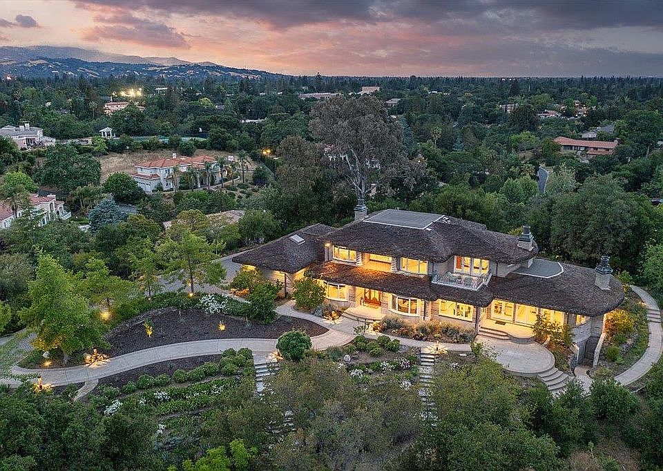 Welcome to 14467 Sobey Road, a rare architectural jewel that crowns the Saratoga hills with commanding 360-degree views. This palatial estate offers an experience as breathtaking as its vistas—an arrival up the sweeping driveway feels like the approach to a magical kingdom, with manicured landscaping guiding the way to a residence of timeless grandeur.