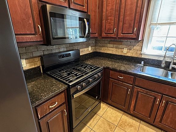 Fireplace with gas logsLarge fenced backyardCovered front porchTile floorsBlack ss appliancesPlenty of cabinetsLevel corner lot
