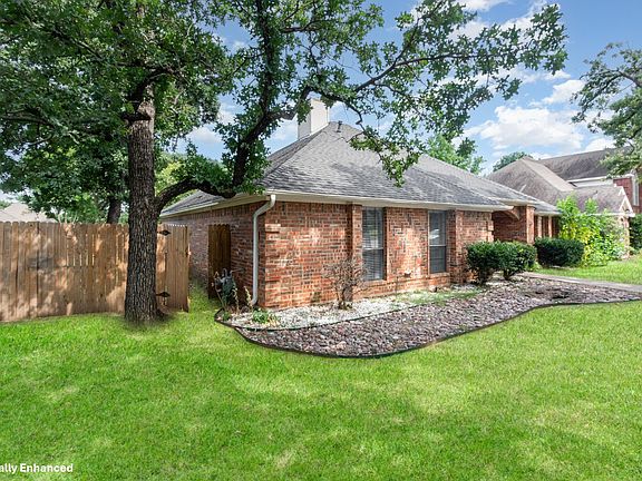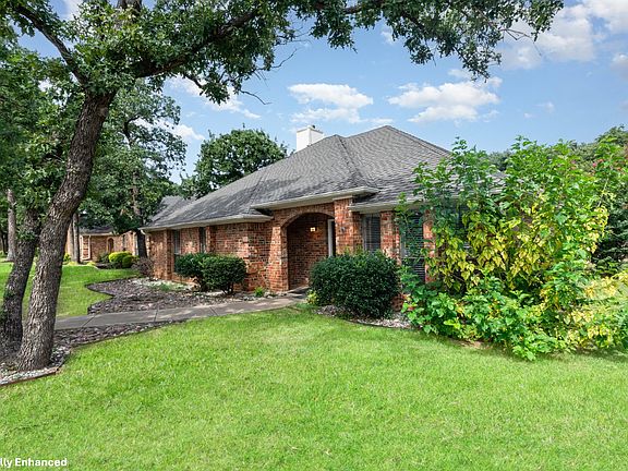 Welcome to 1447 Cat Mountain situated in an established desirable Highland Oaks neighborhood in Keller and zoned to the sought out Keller ISD. This 1-story brick home nestled among mature trees offers large living room with a brick gas fireplace, wet bar and tray ceiling, separate dining room, an eat-in kitchen with granite counter top, white backsplash, white shaker style cabinets and a breakfast area. The primary bedroom has access to the back patio, the en-suite bath has a sunken shower, large dual vanity. Carpets in all bedrooms and vinyl wood looking flooring in the rest of the house. Don't miss out on this home in Highland Oaks a great location priced below $400,000 with close proximity to parks, trails and more. Lawn is virtually enhanced and property is virtually staged. Items will not appear to be at the property.