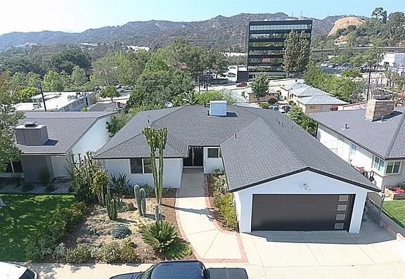 Circa 1955 mid-century. Revitalized, stylish 4 bedrooms, 3.5 bath, media room, 2 story redone to perfection. Nestled in the hillside, this chic home offers oak hardwood floors upstairs, new Milgard double pane windows, light and bright new kitchen with glass tile backsplash and Corian counters, new appliances and a built-in breakfast area. Chic master bedroom/baths and adjoining bedroom ideal for nursery or an office. Venetian plaster graces 2 walls, adding glamour and color. Open formal LR with fireplace and dining area lookout to views from picture window. A walking deck across the back with its stylish wood design railing allow for more views. Media room with fireplace opens up to approx 1200 sq ft terrace with sails adding a natural screen to the bright sunlight. A large rear yardd adds for a great oppty for a lavish play yardd, pool, guest house or whatever your imagination desires. Views of the famous Eagle Rock.