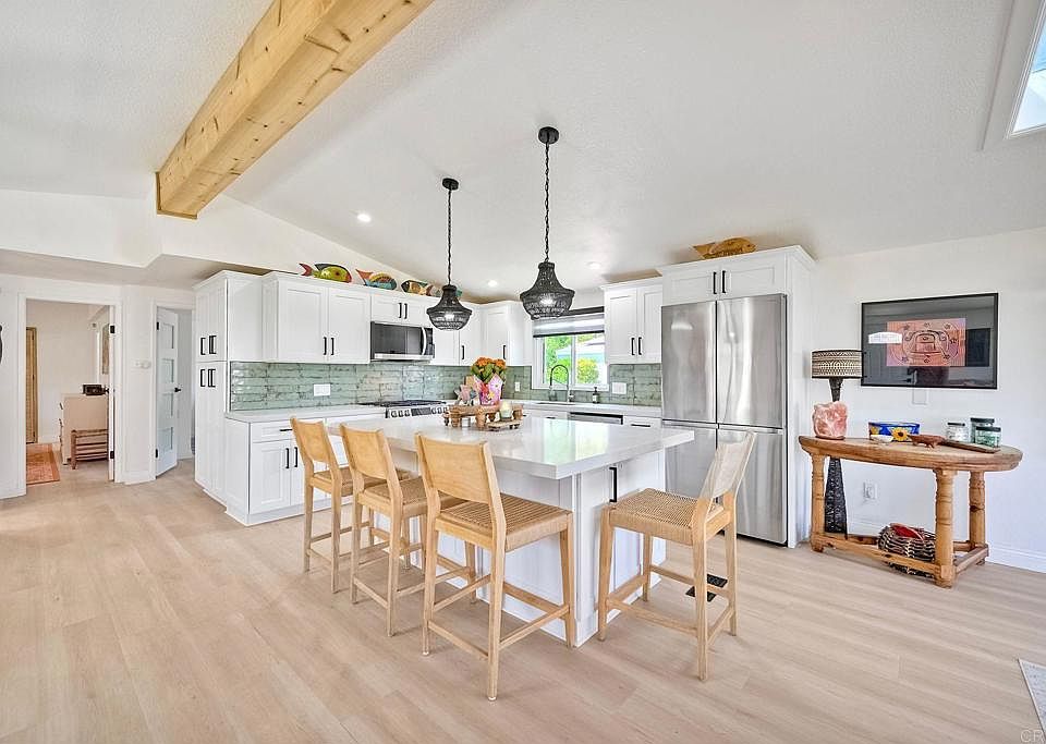 Large backyardNew flooringQuartz countersStainless steel appliancesRemodeled bathroomBeautiful tile backsplashShaker cabinets