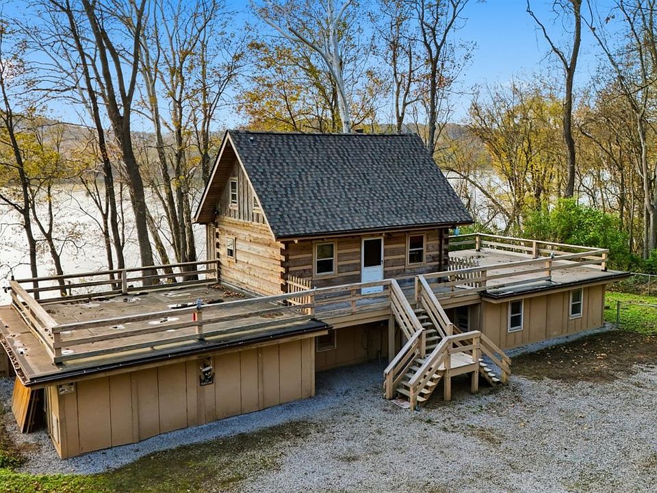 Experience true riverfront living in this charming log cabin overlooking the Ohio River! Filled with natural light, this 3-bedroom, 2-bath retreat has been successfully used as an Airbnb and offers endless versatility. The main level features warm, inviting cabin charm, a cozy wood stove, and a spacious loft bedroom with stunning views. The lower level includes a large rec room and two additional bedrooms, perfect for guests. Enjoy beautiful river views from the expansive outdoor deckideal for relaxing, entertaining, or watching the boats drift by. A rare opportunity to own a rustic cabin with unforgettable scenery and income potential!