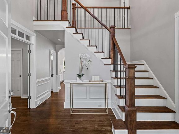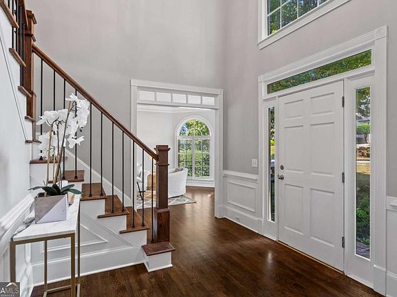 Experience life in the highly sought-after Crooked Creek community, offering resort-style amenities including a 24-hour guard gate, 10 lighted tennis courts, 4 pickleball courts, a junior Olympic-sized pool, kiddie pool with splash pad and 140-foot slide, clubhouse with catering kitchen, basketball court, playground, and community lake. Golf enthusiasts will also appreciate the adjacent 18-hole Iron Horse Golf Course. This showstopping 6-bedroom, 5-bath home boasts nearly 5300 square feet of luxurious living space, designed with both elegance and comfort in mind. Step into the impressive two-story foyer, highlighted by freshly stained solid hardwood floors and fresh paint throughout. The chef's kitchen is a true centerpiece, featuring quartz countertops, subway tile backsplash, white cabinetry, and stainless-steel appliances. Entertain with ease-host dinner parties in the spacious dining room that seats up to 12, gather in the adjoining sunroom, or relax in one of three inviting living spaces. Upstairs, 4 spacious guest bedrooms provide plenty of options, while the primary suite offers a serene retreat with a spa-inspired bath complete with double quartz vanities, soaking tub, frameless tiled shower, and walk-in closet. Dual staircases add convenience and thoughtful design. The finished terrace level expands your living space with a wet bar, wine cellar, and abundant natural light-perfect for recreation and entertaining. Outdoors, the private, professionally landscaped backyard features a custom stone fire pit and backs up to a tranquil creek, creating an ideal setting for gatherings. Located in an award-winning school district and just minutes from Halcyon, Downtown Alpharetta, Avalon, and Crabapple, this move-in ready home offers a rare opportunity to own in one of Milton's premier neighborhoods.