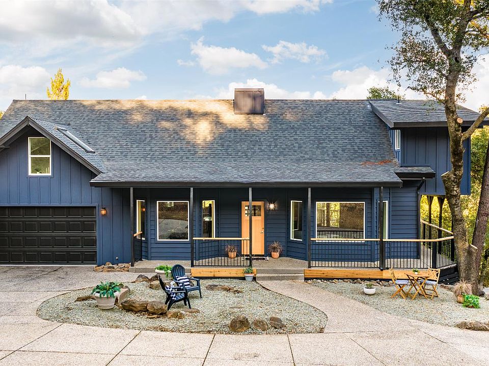 Stunning extensively renovated home in the gated Lake Wildwood community. This 3-bedroom, 3.5-bath residence showcases an expansive open floor plan filled with natural light. Each bedroom offers its own en suite bath; one features a private loft, the primary suite includes a dedicated office, and an upstairs sitting area adds even more flexibility. The chef's kitchen boasts premium appliances, custom cabinetry, and sleek finishes, opening seamlessly to the spacious living and dining areas. A striking staircase serves as a dramatic architectural focal point. Outdoor living shines with a wraparound porch perfect for morning coffee or evening gatherings. Every detail has been thoughtfully updated, blending modern style with everyday comfort. Enjoy all the amenities Lake Wildwood has to offer, including golf, boating, tennis, pickleball, parks, and more. This home perfectly combines luxury and lifestyle.