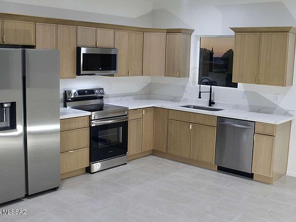 Brand-new 3 bed, 2 bath home on 1.26 acres in Tucson! This 1,350 sq. ft. residence features 9-ft ceilings, quartz countertops, luxury cabinetry, and sleek appliances. Professionally landscaped with mountain views, paved road access, and room for horses. Modern comfort meets wide-open Arizona living