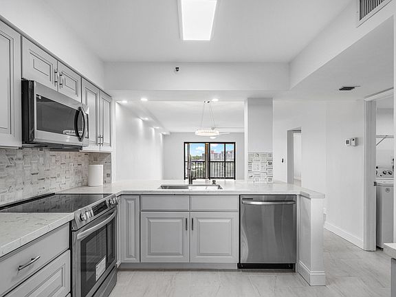 Corner waterfront unit with beautiful lakefront views. Features porcelin tile, grey wood shaker cabnitery, quartz cointertops, marble backsplash, new stainless steel kitchen appliances, smooth ceilings, freshly painted, new basebpards and more 2021 a/c, 2024 HWH, roof is less than 1 year old
