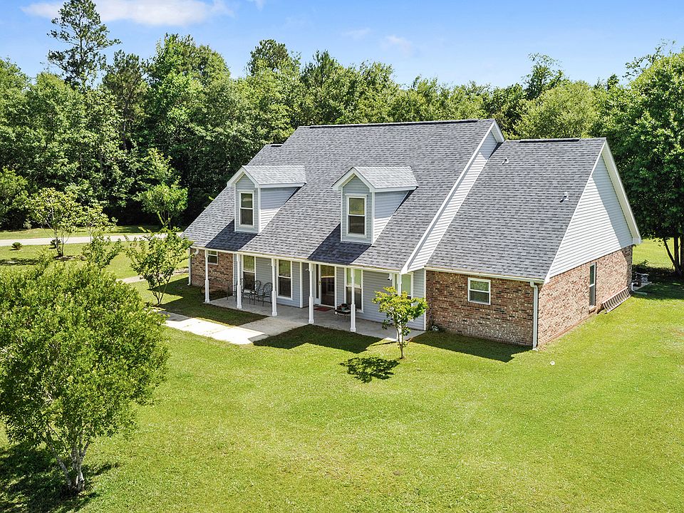 Country living at its finest yet close to everything.Situated on 5 acres with a private stocked pond, paved driveway, 1470 square foot shop with 200 amp electrical service. Whole home security system with cameras, surround sound, whole house water filter, instant near boiling water through its own kitchen faucet,central vacuum system, hurricane shutters and 200 gal gas tank.Potential home office or hobby room. This home is a must see. Also, there are 5 additional acres available has a additional purchase. Survey on file. .NON FLOOD ZONE..