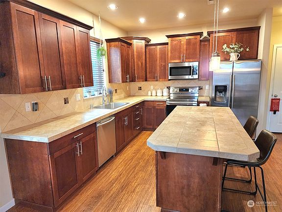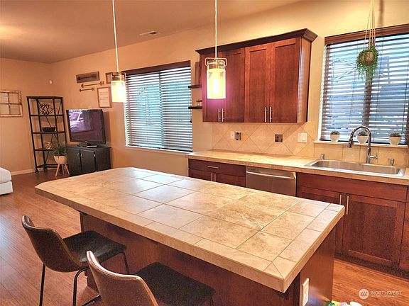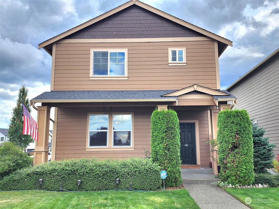 Character and Charm in Tahoma Terra! Delightful and tasteful home featuring open concept living. Gorgeous kitchen with shaker style cherry cabinets, large center island for entertaining and rich hardwood floors. Many updates including : solar window tinting, upgraded fixtures, sinks and faucets, lights, window coverings and stainless appliances. Central Air and security system. Mt Rainier view from upstairs bdrm. Professionally landscaped with beautiful side yard. Wonderful neighbourhood with multiple pocket parks, playground and zip line! Close to all amenities and easy access to east gateFt Lewis. Show with confidence!