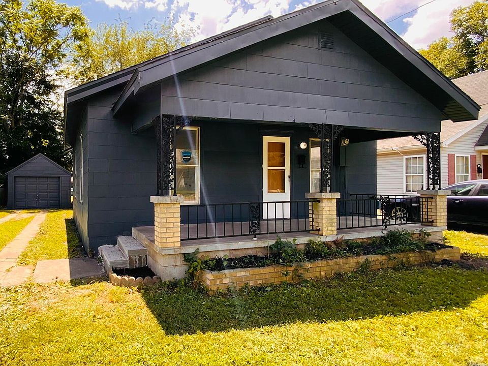 Totally remodeled with a new roof on home and garage!! All new flooring and paint. Brand new kitchen with stainless steel appliances new lower cabinets, plenty of storage and unique trimming!, New bathroom with tiled tub/shower. Two large bedrooms, in the front, one en suite to bath. Third bedroom is non-conforming. Gorgeous oversized windows, high ceilings, spacious kitchen, front porch, tons of storage nooks and crannies, plus a 1 car detached garage! Refrigerator stays!! Perfect for investment or first time home buyer! Must see in-person to appreciate all the unique features and character!