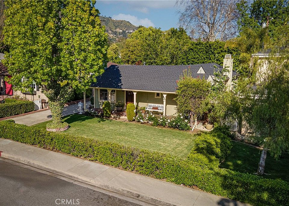 In the heart of Northwest Glendale, just a few doors down from the historic Kenneth Village and the expansive 31-acre Brand Park, is this tastefully updated single level Traditional style home that features a modern floorplan including a large Kitchen/Gathering Space, private Primary Suite as well as a grassy yard and covered patio excellent for entertaining. Called one of the cleanest, easiest homes ever inspected by our general inspector, this home has been thoughtfully expanded and meticulously updated and cared for by the current homeowners for 30+ years. The traditional floorplan includes two Bedrooms and one Bathroom at the front of the house and then past the Kitchen/Gathering Space is the private Primary Suite with full Bathroom. The formal Living and Dining Rooms feature gleaming hardwood floors and a period fireplace. Both front bedrooms have wood floors and spacious closets and they flank a nicely updated full Bathroom with adjacent large linen storage. The heart of the home is the open Kitchen/Gathering Space that has a refreshed Kitchen with granite counters, stainless appliances, recessed lighting as well as a second fireplace, laundry closet and convenient door to the driveway and backyard. Privately situated at the back of the house, is the home's Primary Suite that features wood floors, high ceilings, a walk-in closet plus an additional wardrobe nook and of course a private full Bathroom. The east-facing wall of the Primary Suite has two large glass French doors that open to the grassy Backyard romantically illuminated at night by cafe lights. Tucked behind the 2-car Garage is a shaded patio that has a tranquil fountain, ceiling fan and space for a grill - a perfect place to entertain. There is a newer roof and HVAC, copper plumbing, 200 amp electrical, smart home switches, Nest thermostat and a Ring doorbell. Near to the Disney and Dreamworks campuses, the studios of Burbank as well as Glendale's vibrant tech scene, the location of this home around the corner from Kenneth Village is a great combination of suburban tranquility and the convenience of nearby services just a stone's throw away.