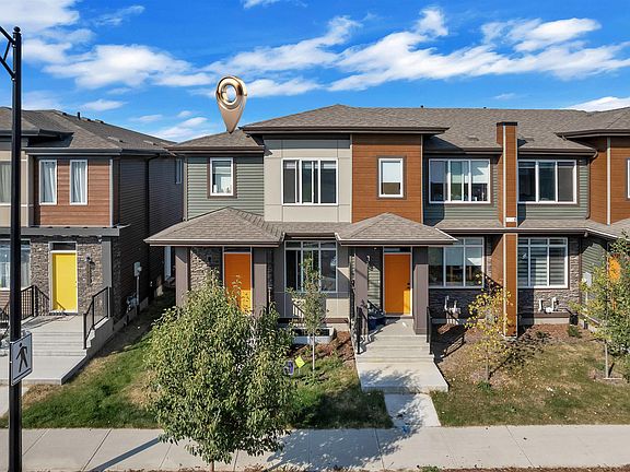 Welcome home to the vibrant community of Keswick! This upgraded 3 bedroom, 2.5 bath townhome built in 2022 offers over 1,531 sq.ft. of living space with NO CONDO FEES. The main floor features an open-concept design with a modern kitchen boasting quartz countertops, upgraded cabinets, stainless steel appliances, and a large island with seating for 4. The rear entry includes a built-in bench and coat hooks, while a SEPARATE SIDE ENTRY leads to the basement with 2 windows, ideal for future suite development. Upstairs you’ll find a spacious primary suite with walk-in closet and private ensuite, 2 additional bedrooms, a central flex room, and convenient upper-floor laundry. The basement is ready for your personal touch, with 2 WINDOWS and outside enjoy a double detached garage plus a large backyard perfect for family gatherings. Steps from parks, trails, schools, transit, and amenities, this home offers the perfect blend of style, comfort, and convenience in Keswick.