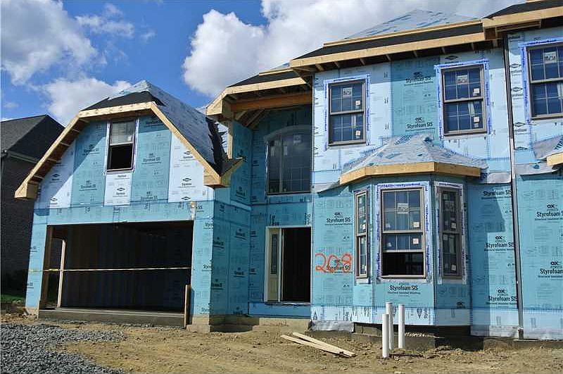 This all brick carriage home is situated on a lot that backs up to green space in the lovely community of the Fields of Nicholson. Enjoy first floor living with kitchen, dining room, great room, master suite, den and laundry all on the first floor. The den will include built in bookcases, crown molding and beautiful triple window. The large kitchen will have maple or equivalent cabinetry, granite countertops and hardwood floors. The huge great room features a corner fireplace, vaulted ceilings, and triple door with view of green space. The first floor master suite has a tray ceiling, huge walk in closet, bath with ceramic shower stall, maple or equivalent cabinetry and granite countertops.Located on the second floor are two large bedrooms each with own bath, loft overlooking the great room, and plenty of closet space. Flooring, cabinetry, countertops, and lighting fixture selections can still be made. Enjoy the maintenance free lifestyle, pool and clubhouse.