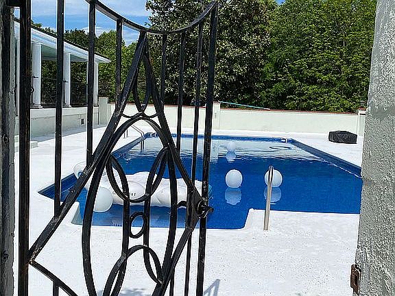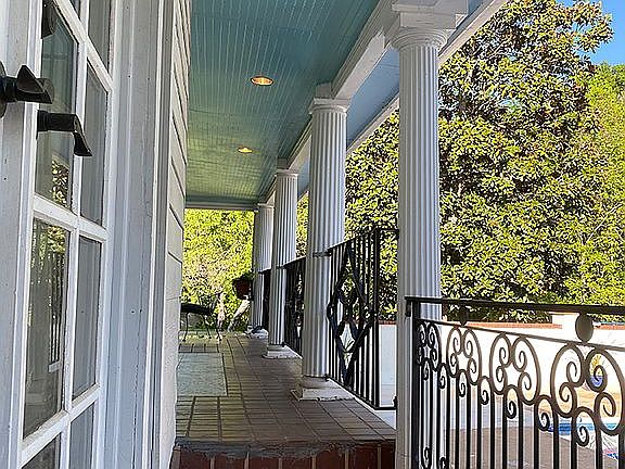 Beautiful Mediterranean-style home vintage home, provides, bright, friendly, spacious living in a country setting. The houses sits on 6 acres with a partially renovated barn with three stalls for horses. Large kitchen with oversized fireplace and indoor/outdoor woodbox. Stainless steel appliances. New cabinets installed in 2009. Large dining room with gas fireplace. Living room, loft, office. Two Master Baths - both with over-sized tub and double vanity, steam closet, temperature controlled shower, unlimited hot water (two-instant hot water heaters). dog shower, mud room; wrap-around porch. Lots of sun, windows, sky light. Hard wood floors, ceramic and marble tile. Well water. Privacy wall and gate. Small gold fish pond with fountain. 20x40 foot salt water pool with cabana. Cement slab for future garage.