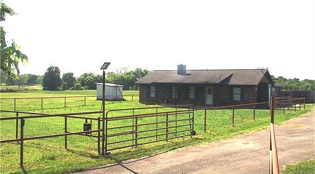 Super cute 5 bedroom, 2 bath brick home on 5 acres! The main part of home is steel framed with vaulted ceilings. Great space with large bedrooms, 2 living areas, fireplace, open kitchen. Acreage is partially fenced and AG exempt for hay. Storage building conveys.