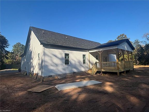 New construction coming to Stoneville. 3 bedroom 2 bathroom home sitting on .92 acre lot to be completed on December.No deed restrictions or HOA. Open concept kitchen, dining, and living room with a cathedral ceiling. The back door leading to a covered deck for entertainment. Primary bedroom will have a walk in closet and bathroom. It also has an attached garage to fit two cars. A bonus room upstairs for multiple uses. Near by there is the Country Club, local stores and taking the highway will take you to Greensboro and also to the international airport. Call/text for further info