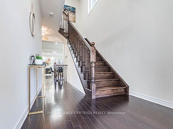 This inviting home, is filled with natural light and offers a host of desirable features inside and out. Situated near parks, schools, trails, plazas and many other amenities. It also provides easy access to upcoming educational and recreational facilities. With 5 bedrooms and 4.5 washrooms, it's move-in ready and boasts pot lights, central vacuum, and a gas fireplace. The main kitchen features ample storage, stainless steel appliances, quartz countertops, and a tiled backsplash. Upstairs, find 5 spacious bedrooms and 3 full washrooms, along with a second-floor laundry room. The property includes backyard access on both sides and a legal finished basement with separate entrance and its own laundry. (Basement is currently rented)
