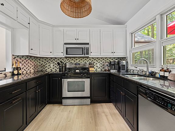 This gorgeous New Buffalo home is FULLY FURNISHED and nestled on a serene, wooded lot. The spacious open layout includes a Hearth Room with a fireplace and Smart TV for cozy gatherings. The fully equipped modern kitchen is ideal for meal prep, and dining options abound in the stylish dining room, posh family room, or on the fabulous deck. An EV charger is available, and you're just moments away from parks, beaches, and downtown New Buffalo.