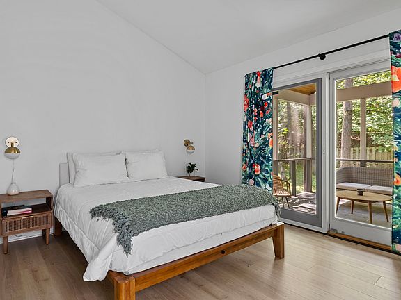 The metro-style dining room is perfect for sharing meals together, and the roomy modern kitchen features high-end stainless-steel appliances and has all the essentials you need for whipping up some tasty meals. There's also a super-cool screened porch with cushy rattan furniture where you can bring a delicious beverage and marvel at being surrounded by some of the Midwest's most majestic woods.