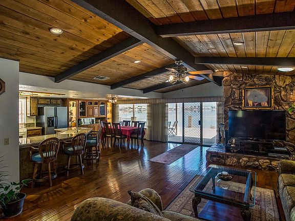Looking for the best view of the open water and mountains with an open concept floor plan? Look no further. Seller sez You have found it! Plumbing has been re-routed overhead, granite counter tops in kitchen and wet bar area, and bathrooms. Engineered wood flooring has a beautiful flow through out the traffic areas. Carpet in bedrooms. Bonus room currently being used as office and has other possible uses. Spa area has a rock waterfall feature. Seller sez 1920sf +/-, for this 2bd 2ba home. Fireplace can be viewed from masterbedroom, and the open living space of the living, dining and kitchen area.