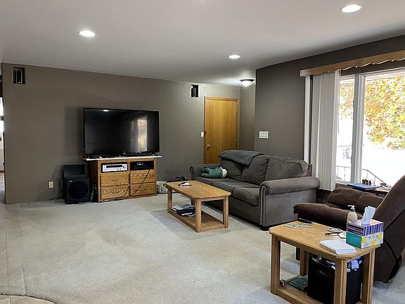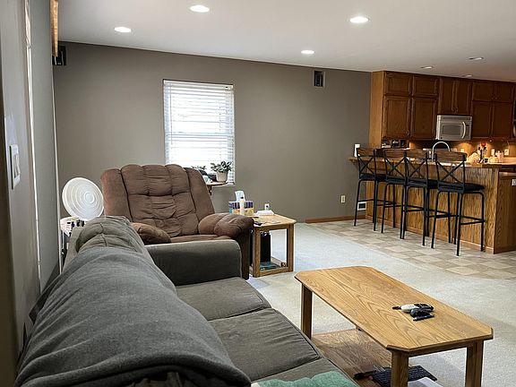 This home has 4 bedrooms and a full bath in this 1 story home. The three car attached garage with a finished interior with heat and air conditioning. Each of the three parking spots has its own garage door. The garage has great natural light with all the windows. Enter into the spacious living room with windows bringing in natural light and open to the kitchen. The kitchen is updated with some special cabinetry features, two level silverware drawer, pantry with pull out shelves, a slide out broom closet, and more. You will find a breakfast bar and bar stools stay with the home. All the kitchen appliances and the washer and dryer stay! There are 3 main floor bedrooms, a full bath, and 2 hall closets. In the basement you will find a sizable family room and another bedroom. There is also a utility room and a laundry room in the basement.