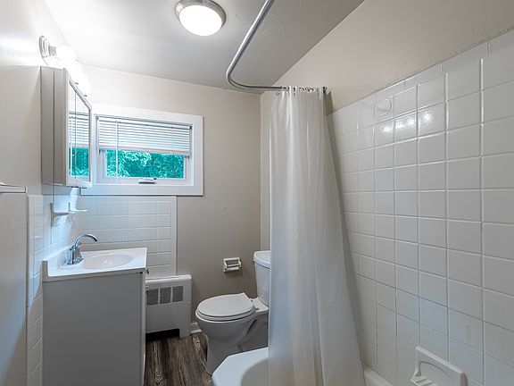 Spacious two-bedroom, one-bath townhomes featuring an updated kitchen, open dining and living area with vinyl flooring, and two upstairs bedrooms with carpeting and an updated bathroom. Each unit includes brand-new windows, a built-in wall A/C in the living room, new window A/C units in the bedrooms, washer/dryer hookups in the basement, a one-car garage, and ample parking. Tenant pays for electricity and oil heat.