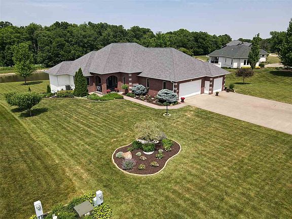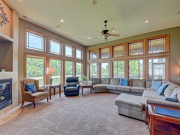 Stunning Contemporary One Story home on the best lot in the neighborhood on the community pond with a trail to the public golf course. Open floor plan with lots of natural light and gorgeous 180 degree views. Gourmet Chef's kitchen with granite countertops, Elite stainless appliances, island, double convection ovens and planning desk. The kitchen opens into the eat-in dining area, formal dining room and great room with 12 foot tall ceilings and gas fireplace, which all flow into the screened porch and open deck with stairs down to backyard...truly an entertaining paradise! The primary suite has spa-like bath with heated floors, tiled walk in shower and sauna. Main floor office with french doors can easily be converted to third main floor bedroom if so desired. The finished walkout LL has a family room, wet bar with kitchenette, 2nd gas fireplace, 2 additional bedrooms and bathroom, workout area, storage, and a garden/golf cart room with heat/ac. 22' x 8' patio off the walkout basement and 22' x 14' drive off garden room entrance. Oversized heated 3 car garage has stairs in back to basement. $30,000 of landscaping completes this beautiful oasis. Welcome Home !