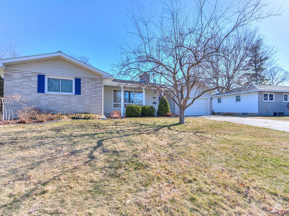 This home sits on a meticulously landscaped fenced in lot with lilac bushes, cherry tree, large stained deck with patio, underground sprinkling and a nice size storage shed. Park your car in your oversize two-stall garage with 60-amp electric service. Enter through the front door into your living room complete with a coat closet and a wood burning fireplace. The kitchen has beautiful maple hardwood floors, custom cherry cabinetry with rolling pull out shelves, snack bar overlooking the family room and dining area. The family room is surrounded by windows and has a slider to access the large wrap around deck. Down the hall you will find 3 bedrooms with laminate flooring and 1 full bath with a laundry shoot (half bath is located near the entrance to the garage).