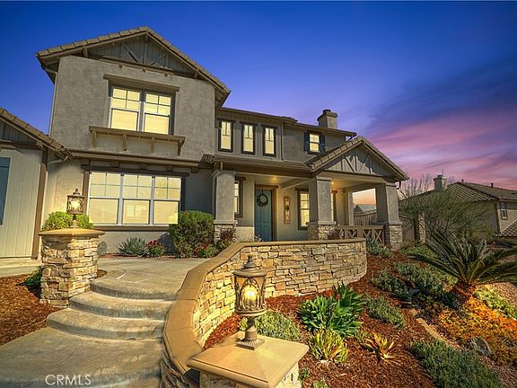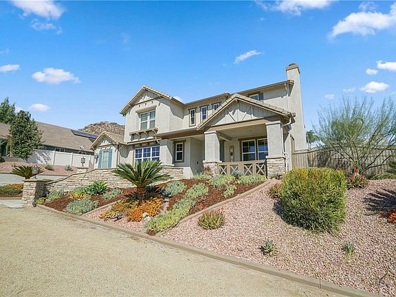 Welcome home to the prestigious Ridge Ranch Estates of Norco Hills. This home combines luxury living with an equestrian-friendly small-town ambiance. As you approach the home, you will notice a large, picturesque house and yard nestled into the hillside. Once inside, you are greeted by a lovely sitting room complete with a fireplace and inviting staircase. You’ll notice a downstairs bedroom, currently set up as a home office, with a full bathroom. Beautiful french doors lead you to an outdoor courtyard perfect for sipping your morning coffee. Next, a formal dining room offers a place for holiday dinners and celebrations by candlelight. As you continue, the luxurious living room, featuring a built-in entertainment nook, is the perfect place to put up your feet and watch a newly released flick or your favorite action thriller. Just adjacent, the remodeled open-concept kitchen glimmers with natural daylight from the windows and doors. The kitchen’s quartz countertops, beautiful cabinets, large island, and recessed lighting create a wonderful ambiance to sauté and serve your favorite dish! Through the double doors, you will find a vast, multi-level outdoor oasis. The resort-style backyard triggers all your senses! You will first notice a majestic saltwater pool and spa, encircled by ample lounge and activity space. The second level of the backyard greets you with a massive outdoor bar, set in between two robust fountains. This section of the property is calling you to sit down and support your favorite sports team on Sunday while enjoying a libation of choice. This phenomenal property features views from many vantage points, the top level of the yard however provides an exemplary view of city lights along with the surrounding hills and mountains. Down below, the property goes on to feature RV parking and optimal driveway space. The outdoor sections are further complemented with vibrant rock and ground cover, creating an aesthetic elegance composed with minimal maintenance and irrigation in mind. Back inside and once up the stairs, you be led to three additional bedrooms, a spacious loft, and a captivating master suite with a large bathroom, dual sinks, a large soaking tub & walk-in shower, along with two walk-in closets. This location is conveniently located near shopping centers, freeways, schools, and golf courses. From the spacious layout to the resort-style backyard, this home is truly special. Schedule an appointment to make this home yours today!