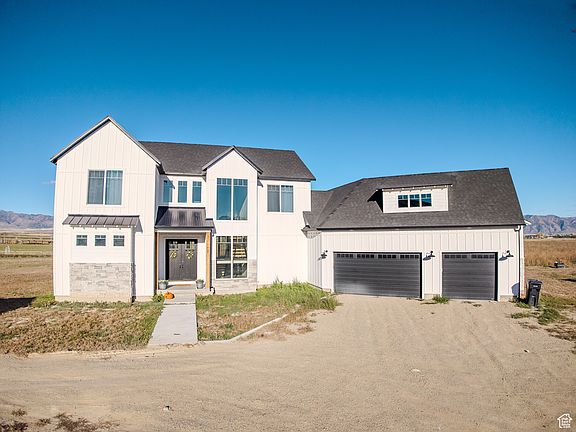 Escape city life and enjoy modern country living on 11.2 irrigated acres in scenic Malad Valley. Built in 2021, this 3,299 sq ft home offers 4 beds, 3 baths, vaulted ceilings, and mountain views from nearly every room. The open kitchen features quartz counters and a large island, perfect for gatherings. A 42'x56' detached shop provides space for equipment, vehicles, or hobbies. The property includes irrigated ground ideal for pasture or small farming and is partially fenced. Enjoy fiber internet, a 3-car attached garage, and easy access to I-15-just minutes from town yet peaceful and private.