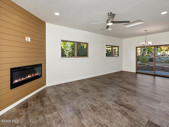 Don't miss this opportunity to live in the highly desirable tall pines south side of Prescott in a brand new, mountain modern home! This rare new construction located at the end of a quiet dead end street with no HOA, has been fully upgraded throughout, boasts exceptional curb appeal with modern accents as well as fully landscaped front and back yard and a two car garage! Whether you are searching for an investment property or summer home or a full time residence within 10 minutes from downtown Prescott, look no further! The inside features an open & spacious master on main design with great room concept, both durable vinyl flooring and white oak wood flooring throughout the home with exception of the bedrooms. Custom level upgrades include wood windows and doors and Schlege door hardware. The main level master suite looks out into the gorgeous, fully landscaped and functional backyard custom paver patio area. The master bathroom boasts an elevated vanity, a spacious walk-in closet, a walk-in custom tile shower, & private water closet. The great room features a floor to ceiling shiplap electric fireplace for those cozy Prescott nights. The highly functional kitchen/great room features an eat up island that comfortably seats two people. Peer out into the back yard from the kitchen sink and watch the wildlife! The included Whirlpool refrigerator, KitchenAid microwave/convection oven, range oven, and dishwasher are all stainless steel. The range is completed with a vented stainless steel hood for those with a flare for cooking! Other kitchen amenities are gleaming granite countertops, soft close drawers & doors. It features an eye-catching backsplash and upgraded cabinetry with modern styling and crown molding. Upstairs, another spacious master suite opens onto a den with barn doors features it's own bathroom and closet, complete with ample storage, raised height vanity, comfort height toilet & a walk-in shower surrounded by gorgeous custom tile. The den area would make a perfect office, tv room, sitting area or library. The upstairs master also features a private deck overlooking the lovely backyard. The laundry room is has ample storage complete with a folding area, broom cabinet and cabinetry. A large storage closet is located just across from the laundry area. This property features a functional two car garage with more storage via a closing closet. There is a side garage man door as well as insulated overhead door & Wi-Fi-enabled garage door lift completed by a paver driveway and walkway through the landscaped and dripped front yard, leading to a large covered entry porch at the front of the house. The backyard has been highly customized, including one covered and one uncovered patio, decorative retaining walls, native rock boulder walls, trellis, native/perennial vegetation and landscaping on drip system.