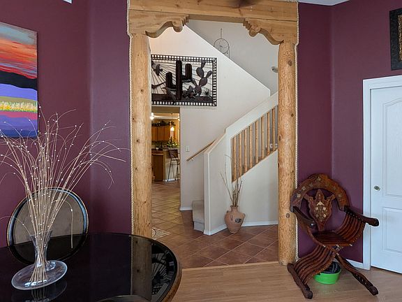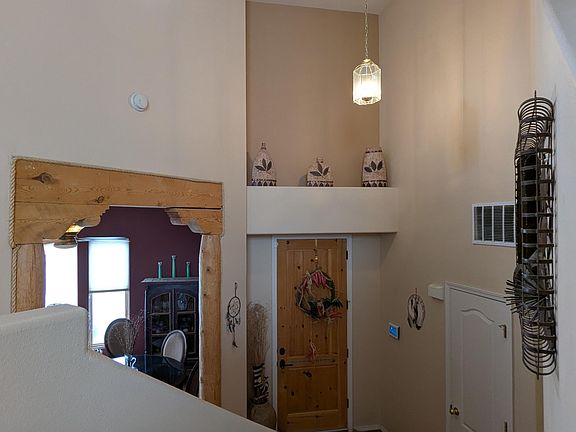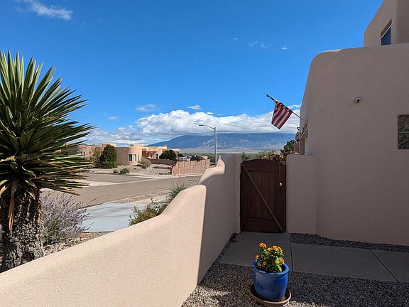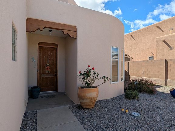 Located in Trinity Estates this beautiful well-kept, semi-custom Tiffany home has a open 2-story living area, with a wonderful kiva gas fireplace. Upstairs primary bedroom has bath with large garden tub and separate shower, plus private balcony with wonderful views of the Sandia Mountains, the balloon park and fireworks. Two additional bedrooms and full bath upstairs. Also, downstairs, half bath and front room with closet, can be used as a formal dining room, office or 4th bedroom. Finished 2-car garage. Backyard patio and upstairs balcony, with lavender views, great for quiet morning coffee. Only 1 of 6 homes in the subdivision with a large backyard. Home is close to Intel, Smiths, Walmart, CVS, Walgreens and a short distance to medical facilities including the Rio Rancho VA clinic.