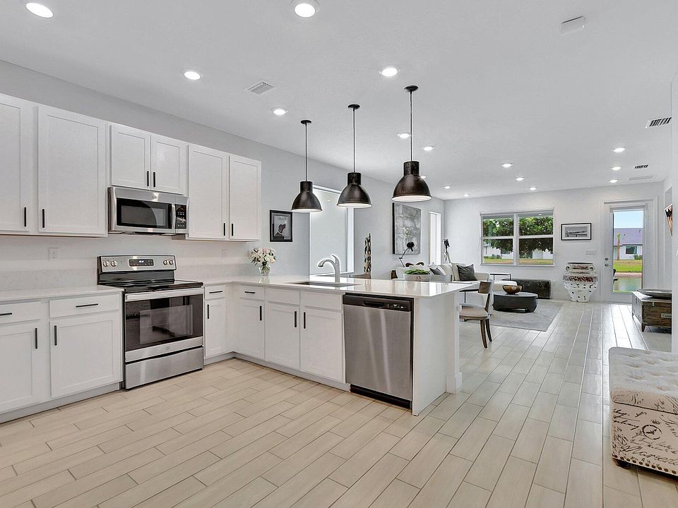 Gorgeous, contemporary newer construction, turnkey retreat in gated 55+ Avalon Trails. Built in 2021, this 3/2 single family home features luxurious finishes, all hurricane impact windows & doors, all porcelain tile flooring, upgraded LED lighting, quartz countertops & smart home music, thermostat, & Ring doorbell camera. Located on the finest oversized pie shaped lot on the development's only cul-de-sac with an unobstructed lake view. Furniture negotiable. Low HOA includes cable, wifi & landscaping. Avalon Trails features one of the newest, active, completed clubhouses east of the Turnpike on a former golf course. Amenities include: social events, pools, pickleball, tennis, game room, & miles of trails and lakes around the community. Sellers are building a new home & are ready to close.