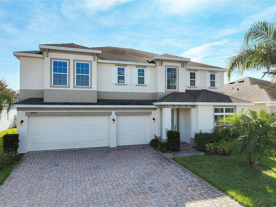 when you walk in high ceiling and gas stove Living is easy in the impressive two-story, three-car garage, 3,627 square foot Lancaster. This floorplan encompasses five spacious bedrooms, three luxurious baths, a formal living and dining area, and a generous family room and a separate gathering room. Although all of the bedrooms, except the guest bedroom, are located upstairs, the lavish master suite is very private and includes a sitting area. The master suite showcases design and functionality with a tremendous walk-in closet, dual bathroom cabinets with sinks, and a shower and separate soaking tub. The convenient upstairs laundry is great for busy families alleviating the need to carry heavy baskets up and down the stairs. On the first floor, the family room and gourmet kitchen, complete with a walk-in as well as a butler pantry, combine and create the perfect place to entertain family and friends.Black Lake Preserve will enjoy prestigious living in a neighborhood fronted with an impressive brick wall. For the convenience of the residents, there are two privacy-gated entries. Residents will also enjoy living near to newly built elementary and middle schools where children can walk or ride bikes to attend. Close proximity to Florida’s Turnpike and State Roads 535 and 429 will provide an easy drive for commuters to destinations including downtown Orlando, Walt Disney World Resort and the Maitland Exchange