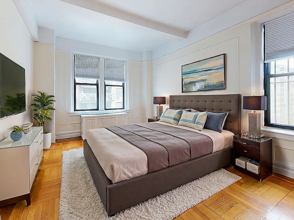 Welcome to 145 West 96th Street, Apartment 6Ta bright and spacious one-bedroom residence that blends classic pre-war charm with modern comfort. Perched on a high floor with unobstructed views, this sun-filled home features soaring ceilings, beautiful hardwood floors, and a layout designed for both entertaining and relaxation. The generously sized living room offers plenty of space to host friends or unwind at the end of the day, while the king-size bedroom easily fits additional furniture and includes ample closet space throughout the apartment.