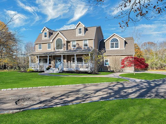 145 Baldwin Place, a truly warm and inviting 5 bedroom, 2.5 bath home situated in the Cutchogue Park District, on a 2-acre corner lot, and in the heart of the North Fork. Upon arriving, you'll notice a charming covered mahogany front porch. As you step inside, you are greeted by a sun-drenched foyer with cathedral ceilings. To the right, a formal dining room. To the left, a flex room that can serve as a den, library, family room or possible main floor bedroom. Continuing towards the back of the house is an open concept living room, complete with a cozy woodburning fireplace, that seamlessly blends into the expansive chef's kitchen. An oversized island offers plenty of workspace, while a walk-through pantry, laundry room and mudroom provide practical solutions for everyday living. A year-round sunroom offers a tranquil space to enjoy views of the large backyard and patio. Upstairs is a spacious primary bedroom with vaulted ceilings, multiple closets and a large ensuite bathroom plus four additional bedrooms and a full bath. There is also a full walkup attic, an unfinished basement with 9' ceilings and an attached two car garage - these spaces offer endless potential for storage or customization to suit your needs. This home is just a few blocks from the water, providing direct access to the serene Peconic Bay. This year-round home or vacation retreat, with plenty of room for a pool and guests, can be your North Fork dream come true!