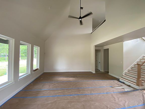 As you approach this home you see the courtyard entry garage and the combination of board and bat with brick and stone front elevation. This plan offers 2 bedrooms upstairs with a play loft as well. Downstairs you will find the master bedroom and a 4th bedroom that could be used as a study. The family room has a vaulted ceiling and opens to the kitchen area. The kitchen has a cooktop with a vent a hood and a separate microwave and oven area. The master bath has 2 vanities and a separate tile shower and soaking tub. The master closet has access to the utility room. There are several closets in this plan for additional storage. Attention to details include lawyer block around the island, quartz countertops, wood look tile in living areas and master bedroom, a etched glass door for the large pantry. Bathrooms 2 & 3 have tile surround tubs. This home sits on a large lot and with be fully grassed, the backyard will have an 8 foot privacy fence with a rot board.
