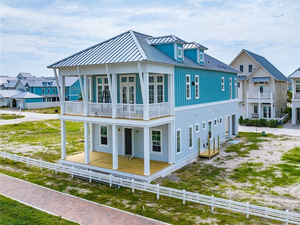 Bring your seaside dreams to life at "Barefoot Breeze"! A product of talented Brandon Lafayette Homes, this 2-story park front stunner puts a fresh spin on traditional coastal style. From frame to finishes, every detail was hand-selected to reflect the home’s natural environment. Enjoy sand-hued floors, ocean-inspired tile work & creative wallpaper selections throughout. Brass bunk lighting and sconces lend a nautical touch. Built for comfort & convenience, the floor plan features 2 large porches, lofty 2nd-fl gathering space w/ crowd-ready kitchen/dining, Stainless appliances & fridge w/ cabinet-style front make food prep easy & stylish. 3 guest suites + bunk room w/ attached bath. Don’t miss thoughtful extras: 1st-fl flex space w/ built-in bar & bonus mud room off covered carport. Located in desirable Cinnamon Shore South, this park-side charmer is a stroll away from resort-worthy pools, fish-filled lakes, private beach access & more. Be first to call this retreat home-an oasis all your own! Ready for move-in by February!