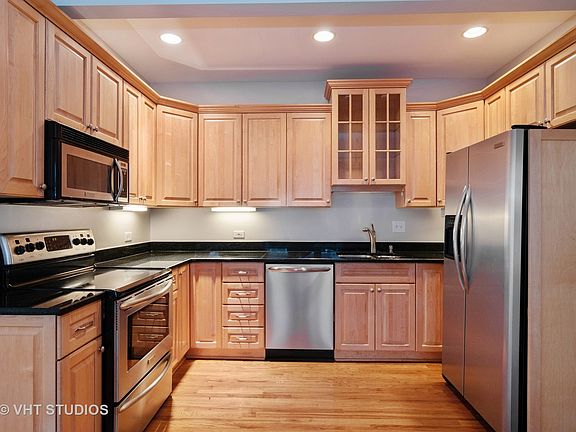 Stunning 1st Floor 2 Bedroom, 2 bath Condo located in Riverside's distinctive First Division neighborhood in close walking distance to the Metra train station, & historical downtown.Infused with natural light, this beautiful condo offers an open floor plan with an abundance of living space, gleaming hardwood floors & freshly painted walls throughout. The spacious living/dining room is perfect for relaxing & entertaining. The kitchen boasts granite counter tops, stainless steel appliances, & plenty of cabinet storage. The master bedroom En Suite features a large bathroom with jetted spa tub, double sinks and separate shower plus ample walk-in closet with built-in organizers.The second bedroom also offers a double closet and is adjacent to the second full bath with tub. Added features include in-unit washer/dryer, security door entry with intercom system, private rear deck, & two parking spaces. Located in the communal basement, an additional storage room & work room belong to this unit.