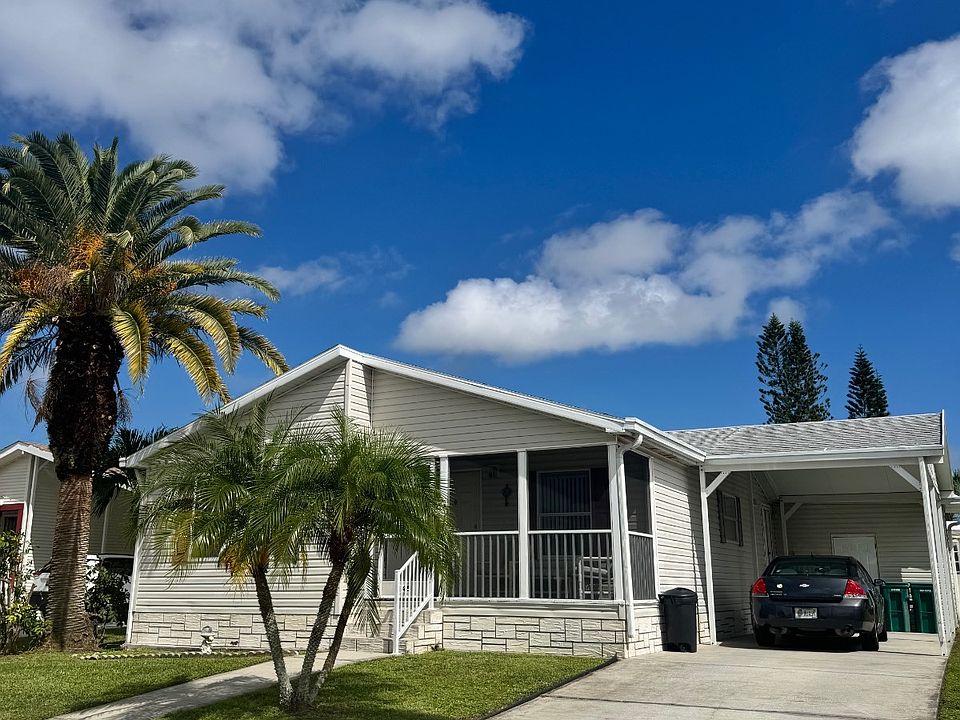 Welcome to this beautifully maintained 2-bedroom, 2-bath manufactured home located in the desirable 55+ community of Lakewood Village. This charming residence offers the perfect blend of comfort, convenience, and Florida's active lifestyle. Step inside to find an inviting open-concept layout that seamlessly connects the living, dining, and kitchen areas perfect for relaxing or entertaining guests. Both bedrooms are spacious and designed for privacy and comfort, while the enclosed screened porch provides the ideal spot to enjoy your morning coffee or unwind in the evening breeze. Sold partially furnished, this home is truly move-in ready just bring your suitcase and start enjoying the sunshine! Major appliances include a washer, dryer, refrigerator, and stove, complemented by central A/C. With a base lot rent of approximately $895 per month, residents enjoy access to exceptional amenities such as a clubhouse with planned activities, fitness center, game room, heated swimming pool, shuffleboard courts, billiards, laundry facilities, and a picnic area all just minutes from the beach, shopping, and the Orlando Melbourne International Airport. Pet-friendly and surrounded by natural beauty, Lakewood Village offers everything you need to relax, connect, and embrace the Florida lifestyle you deserve where comfort meets community in the heart of paradise. All property details are provided for informational purposes only and are subject to independent verification. While every effort has been made to ensure accuracy, no guarantee or warranty expressed or implied is made regarding the condition, measurements, or completeness of the information presented. Property dimensions are approximate and should be verified by the buyer. It is the buyer's responsibility to confirm current community fees, lot rents, assessments, and any applicable pass-through costs, as well as to review rules, regulations, restrictions, and pet policies directly with the community or park management. Our company assumes no liability for quoting or interpreting community-related fees, terms, or policies.