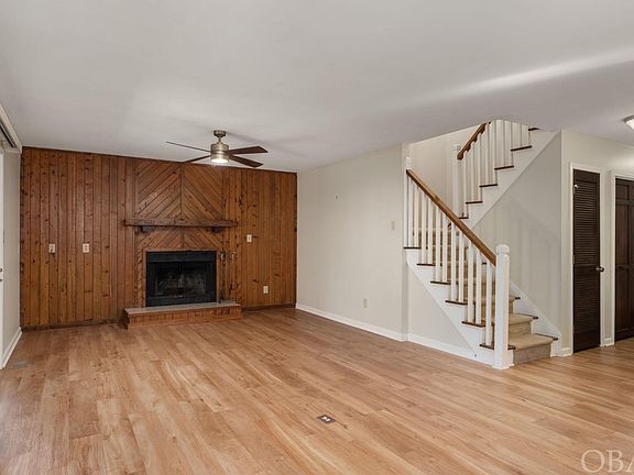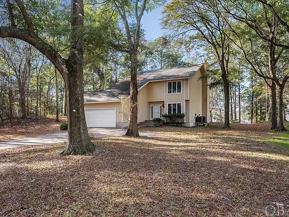 Charming canalfront home with 3 bedrooms and 2.5 baths is just waiting for its new owner! This 21,833 sf wooded lot provides both privacy and convenience to everything local. Once inside the front door, you'll find a bonus room with a large closet. It would make a perfect den or office. On this level you'll also find the kitchen, dining/living room with a wood burning fireplace. Firewood is conveniently stored in the garage for easy stoking of the winter fire. In summer you'll find a great screened porch to enjoy the weather and the view of the canal. This lot is bulkheaded and fenced along the property. The view from the porch is really surprising due to the nice elevation of the lot. There's also a laundry on this level, a half bath, and, of course, the garage. Upstairs, you'll find 3 bedrooms, one of them a primary with it's own bath. Owners have done a good job maintaining their home. In 2019, the downstairs HVAC was replaced. In 2021, the upstairs HVAC was replaced, a new septic drainfield and water line were replaced, the refrigerator, washer and dishwasher were also replaced and a fence added by the canal. In 2022, LVP flooring was installed on the first floor, light fixtures and ceiling fan replaced in the den, a new chandelier in the staircase, lights in the kitchen. This year, the deck was cleaned and painted. As you can see, the new buyer has a primed canvas to create their Outer Banks dream home. Come see it today!