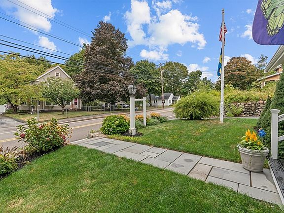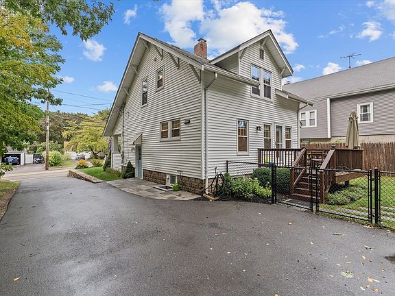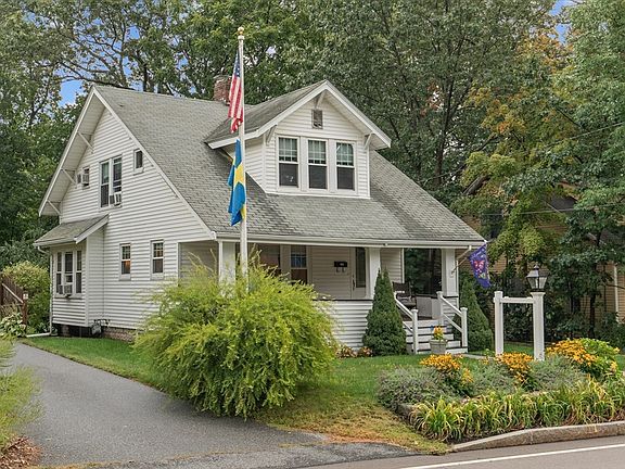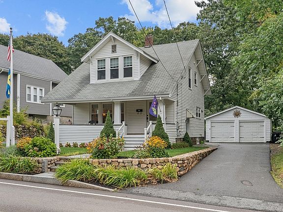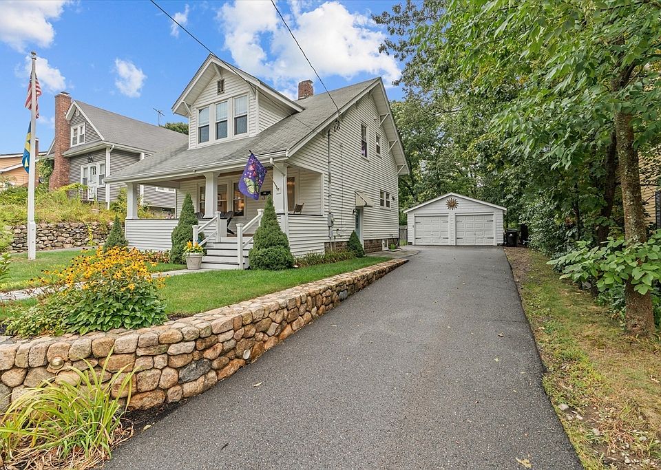 Beautifully maintained & thoughtfully updated, this sun-filled bungalow blends timeless charm with modern convenience. A fireplaced living room features a custom natural granite mantle repurposed from a local church and flows into a large, bright dining room, perfect for entertaining. The updated kitchen impresses with tile flooring, glass-tiled backsplash, breakfast peninsula, and stainless steel appliances. Gleaming hardwood floors run throughout, complementing three spacious bedrooms—all with walk-in closets. The recently renovated tiled bathroom, updated windows, plumbing, heat, water heater and electric offer peace of mind. Step out onto the back deck or relax on the inviting front porch overlooking a professionally landscaped yard and illuminated stone wall. A versatile finished room in the lower level adds flexibility, while the fenced backyard and detached two-car garage complete the package. Near major routes/shopping/dining makes this home as convenient as it is charming.