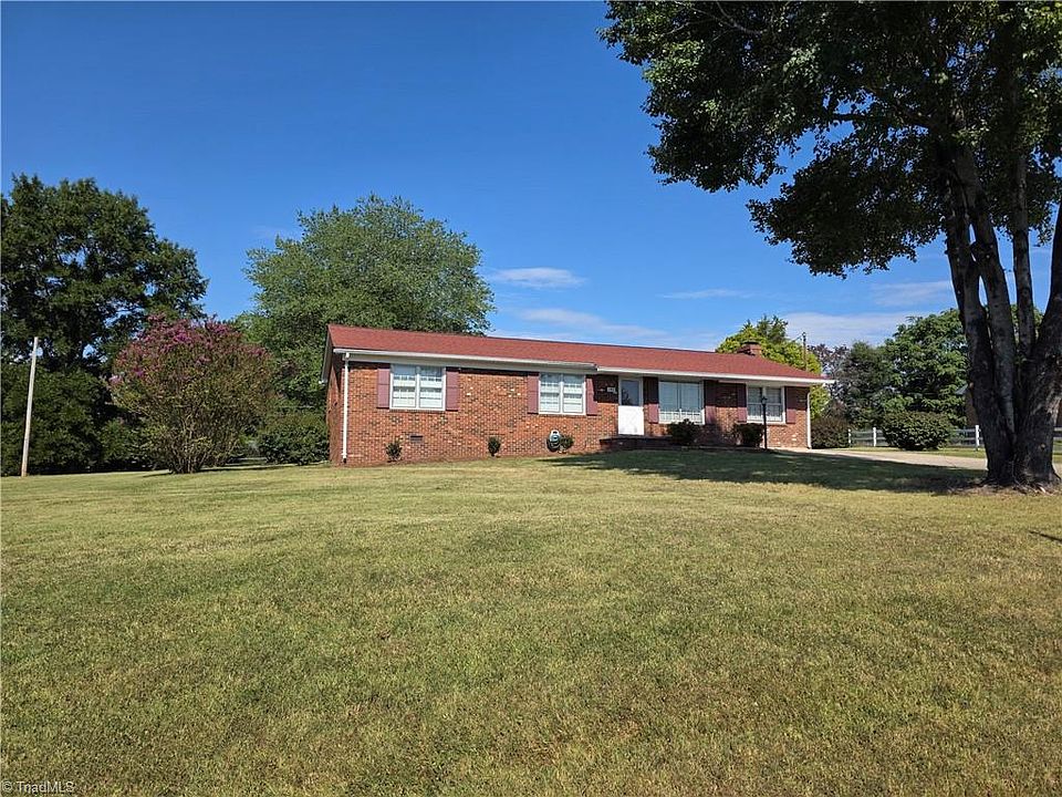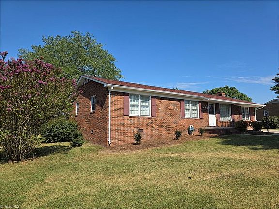 Well loved brick ranch with 3 bedrooms,open kitchen/dining room,fireside den with gas logs,formal living room.Several built in book cases,large 1.5 baths,covered back patio and shade tree,cement drive and detached garage with 2 additions added on for extra storage.Move in ready,county taxes & dan river water.