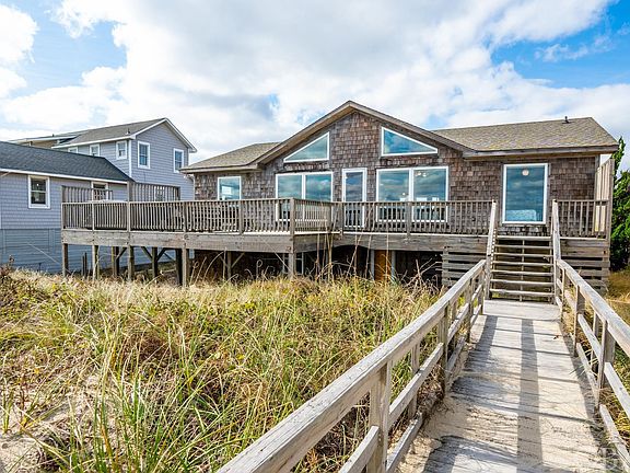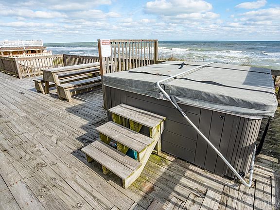 A must see oceanfront cottage with an unbeatable ocean view. This 5 bed, 3.5 bathroom charming cottage is located in the quiet neighborhood of Carolina Dunes just a few minutes north of the downtown Duck. The home has a great open living space with a vaulted ceiling, exposed beams, cedar walls and 6 large fixed windows that allow you to enjoy the stunning ocean views from anywhere in the great room. Step through the back door onto the large sundeck furnished with patio furniture and a hot tub that looks out over the Atlantic Ocean. There is a private walkway making it easy to go down to the beach and an outdoor shower to rinse the sand off when you come back up. Along with the great room, the second floor includes 4 bedrooms (2 that have ocean views), 2 full bathrooms and 1 half bath. Downstairs you’ll find a rec room and bedroom with a foosball table, flat screen TV, refrigerator, 2 bunk beds and another full bathroom. This a great turn-key rental home, coming fully furnished and ready to go for the 2023 rental season. Beach nourishment is currently planned to start in March in this location. Follow the updates at https://www.townofduck.com/beach-nourishment-project/ HOA fees are voluntary.