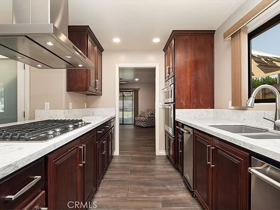 Beautiful 5-Bedroom Home with Upgrades on a Spacious Lot Nestled at the End of a Cul-de-sac!! This home features 5-bedroom, 2-bathroom with the perfect blend of comfort, style, and functionality. Situated on a generous pie-shaped lot. The property boasts ample space and privacy. The remodeled kitchen is a chef’s dream, featuring sleek new cabinets, quartz countertops, a gas cooktop stove, and stainless steel appliances. Ceramic tile flooring flows throughout most of the home, providing both durability and elegance. The cozy family room invites relaxation with its gas/wood-burning fireplace, perfect for chilly evenings. Each bedroom is equipped with mirrored closet doors, adding a touch of sophistication and functionality. Both bathrooms have been beautifully updated with ceramic mosaic tile, glass enclosures, and quartz countertops. A massive bonus room/bedroom upstairs offers endless possibilities, from a guest suite to a playroom or home office. The backyard is an entertainer’s delight, featuring a covered patio, a shed workshop, and convenient RV access. Plus, the home is equipped a new 200 amp electrical panel box with solar panels and two solar batteries, offering energy efficiency and savings. Don’t miss out on this one-of-a-kind home that blends modern upgrades with timeless charm. Schedule your showing today!