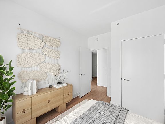 The building comes fully equipped with first-class amenities including an attended lobby, concierge service, a residents lounge with billiards and shuffleboard tables, a reservable private dining space and meeting room, TV lounge, built in banquette, and work stations. Outdoor spaces feature a rooftop terrace lounge seating throughout, dining tables, grills, and sweeping views of Manhattan. Additional outdoor space includes a residents elevated garden terrace and a public landscaped plaza just outside the lobby. The fully equipped state-of-the-art fitness center features Peloton bikes, a Wellbeats studio with on-demand fitness classes, and Activ Virtual Personal Trainer. The building is also pet friendly and features a pet spa, along with a childrens playroom and bicycle storage.