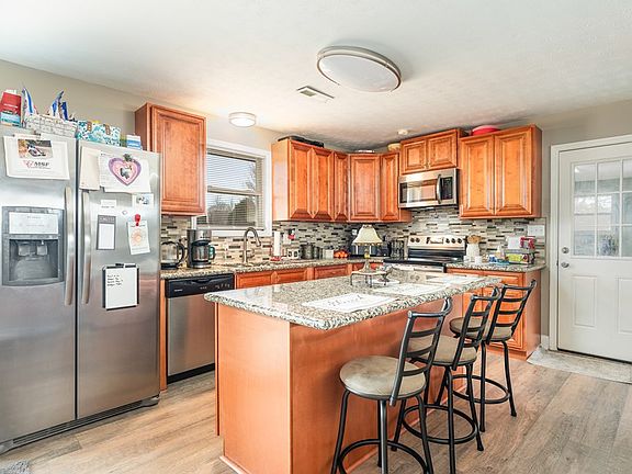 Beautiful brick home that has been updated throughout. This basement rancher is situated on level corner lot in Seymour and offers nice open floorplan, island in kitchen with stainless appliances, 3 bedrooms on main level and 2 full baths. The basement is finished with den area and woodburning fireplace, large room that is currently being used as 4th bedroom (Septic is approved for 3BR) or would be great office/craft/exercise space. 2 car garage on main and privacy fence in back with nice large yard. Very conveniently located. **Speakers and mini fridge in den down will not convey*