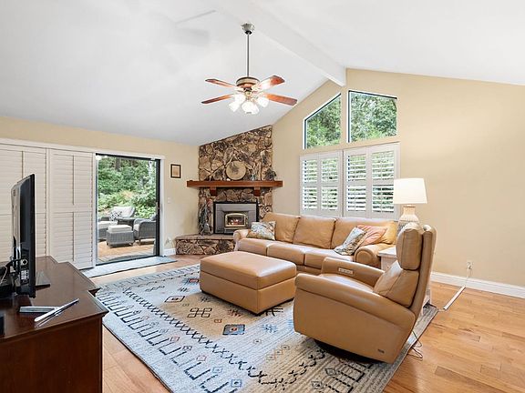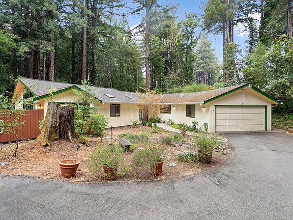 Wonderful single level home in the Lomond Terrace neighborhood in Ben Lomond just minutes from Highland Park and Highway 9. This home was built in 1988 and has all the modern amenities you are looking for. The updated kitchen features quartz countertops with elegant subway backsplash & stainless steel appliances. The spacious primary bedroom suite boasts vaulted ceilings, abundant natural light, a walk-in closet, and a private deck. The updated primary bathroom includes double sinks and a roomy walk-in shower, and both bathrooms have filtered reverse osmosis water taps as well as in the kitchen. Outside you will find a sunny deck to BBQ on and enjoy the views of the trees, a serene redwood grove, a Hot Springs hot tub where you can stargaze at night and plenty of room for gardening. The 2 car garage offers space for all of your toys and the driveway will accommodate several vehicles. Peaceful & quiet location in the Santa Cruz mountains. Welcome Home!