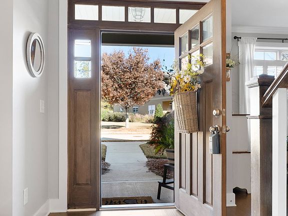 Nestled in a charming mature-adult community, this beautifully crafted Craftsman style home offers timeless character and modern comfort. The welcoming rocking chair front porch has a beautiful wood door with sidelights and a transom. Step inside to an open, light-filled layout highlighted by a warm and inviting living room featuring custom built-ins, a cozy gas-log fireplace, and beautiful hardwood flooring-making it the perfect space for unwinding at the end of the day or gathering with guests. The gourmet kitchen offers granite countertops, stylish cabinetry, a spacious island ideal for entertaining, a generous pantry, and sleek stainless steel appliances. The dining room stands out with its elegant coffered ceiling and charming wainscoting, creating a beautiful space for everyday meals or special occasions. The cozy primary suite, conveniently located on the main level, provides a peaceful retreat with warm hardwood flooring. The en-suite bath includes a tile shower with glass door, a granite double vanity and a spacious walk-in closet that keeps everything organized. The main floor continues with a comfortable guest bedroom, second full bath and dedicated laundry area. Throughout the main level of this home, beautiful plantation shutters enhance both style and comfort. Upstairs, adds even more flexibility, including an additional bedroom with a large closet and a huge bonus room-an ideal space for a media room, home office, hobby area, grandkids playroom, or extra storage. A rear-entry garage leads directly into the kitchen, making it incredibly convenient for unloading groceries or coming and going with ease. Outside you'll find a private, fenced patio area-perfect for reading, enjoying your morning coffee, or simply relaxing in your own peaceful retreat. This intimate community offers the perfect blend of comfort and convenience, featuring sidewalks and a peaceful atmosphere that feels tucked away-yet still minutes from shopping and dining. With lawn care included in the HOA dues, you can enjoy truly low-maintenance living without sacrificing proximity to the amenities you love!