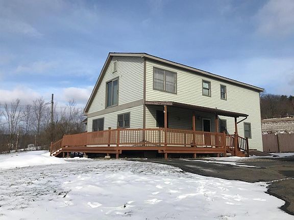 This contemporary home offers everything you will want in your new house; space, comfort, views! The main floor has a fantastic living room with cathedral ceilings, fireplace with pellet stove and large windows to provide plenty of light. In the kitchen you'll find plenty of cabinets and counter space plus an additional large pantry! Dining room, 2 bedrooms and bath complete the downstairs. On second floor, you will find an impressive master suite with large bathroom, walk-in closet and laundry room. (600 sq ft!) Radiant heat keeps home warm and cozy during winter. Conveniently located just a minute drive to 96B with easy access to Interstate 86 via Owego; 20 minute drive to Ithaca.